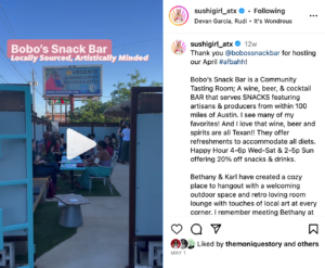Sushigirl_atx Bobo’s Snack Bar Instagram Post